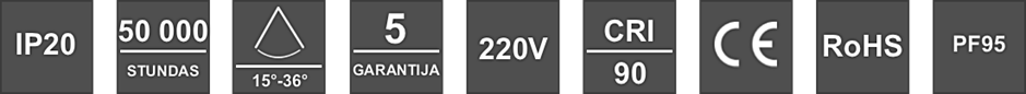 ID:72801 Jauda: 5W Gaismas plūsma:500lm (100lm/W) Spriegums: AC100~290V PF: 95 CRI:90 Izmēri:D55xH50mm, Bāze: D65xH40mm IP Protokols: IP20 Materiāls: Alumīnijs, PC Gaismas krāsa:3000K Gaismas leņķis: 15°-36° Sertifikācija: CE,LVD,RoHS Garantija: 5 Gadi