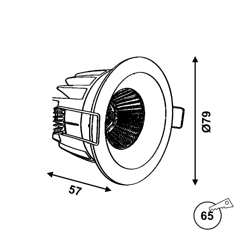 ID:24309 Jauda: 10W (CREE COB) Gaismas plūsma:890lm(89lm/W) Spriegums: AC100~290V Izmēri:D79xH57 mm (Izgriežamais diametrs - 65mm) IP Protokols: IP44 Materiāls: Alumīnijs, PC Gaismas krāsa: 2700K Svars