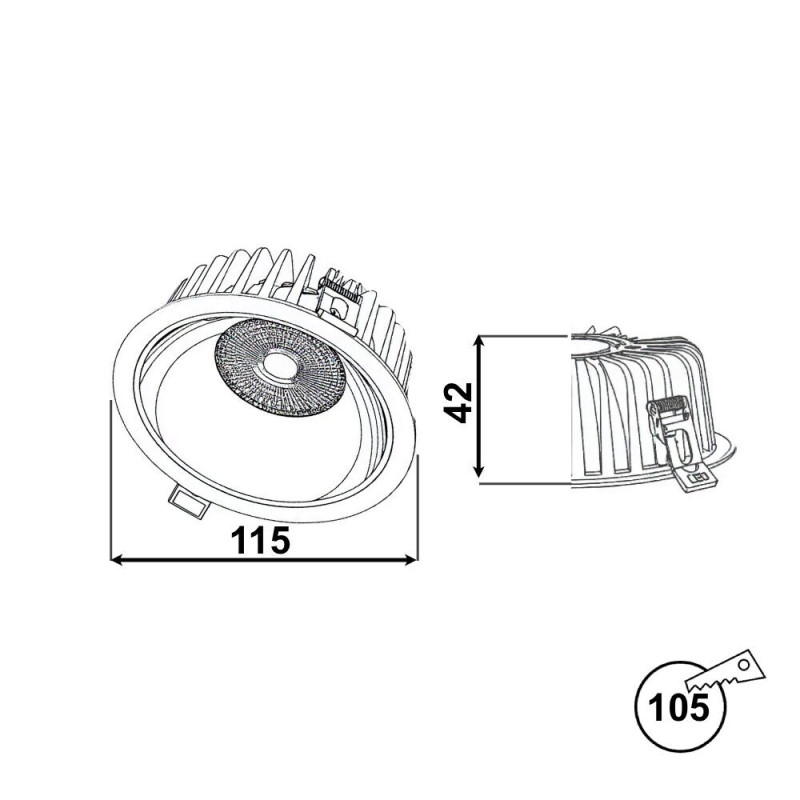 ID:23455 Jauda: 12W Gaismas plūsma:1080lm (90lm/W) Spriegums: AC100~290V Izmēri: D115xH42mm(Iegriežamais D.105mm) IP Protokols: IP44 Materiāls: Alumīnijs,PC Gaismas stara leņķis: 45° Gaismas krāsa:3000K Svars: 0.33KG Sertifikācija: CE,LVD,RoHS Garantija: 5 Gadi