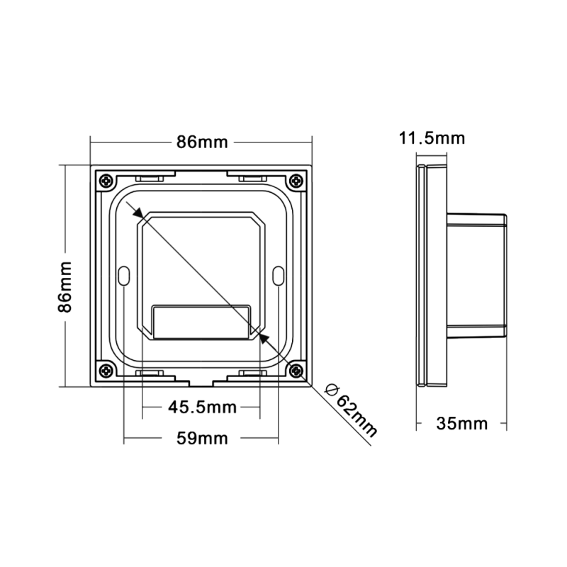 Izmēri:86x86x35mm