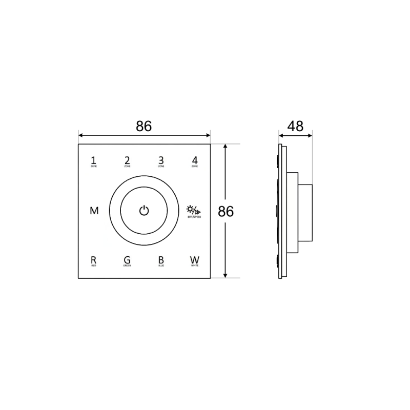 Jūsu iepirkumu grozs ir tukšs! RGBW 4 Zonu RF/DMX512 Sienas Slēdzis AIP-T41-W