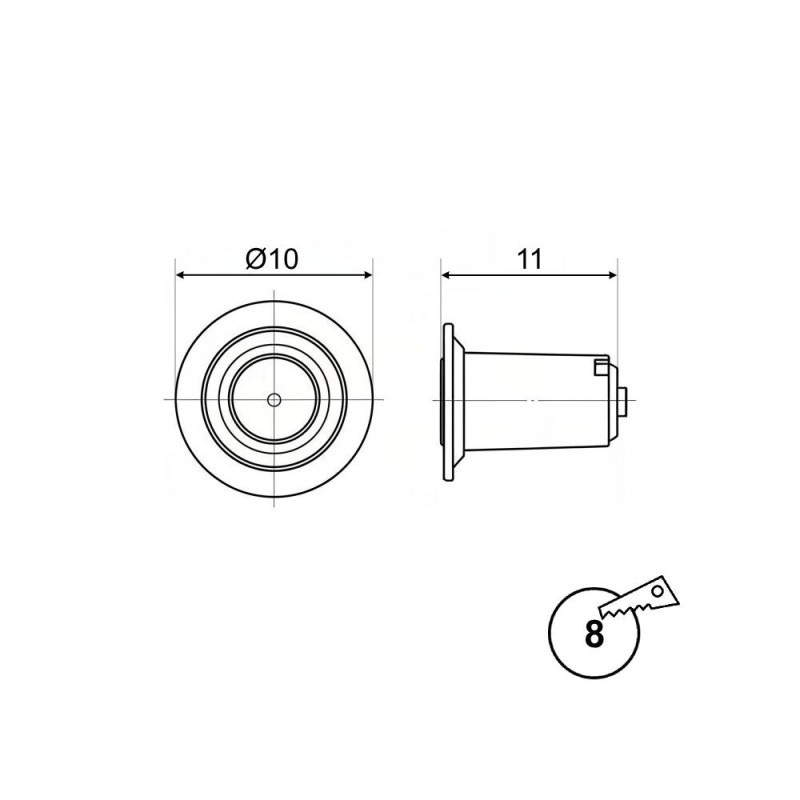 Izmēri:D10xH11mm, Iegriež D. - 8mm (Vads - 1500mm)