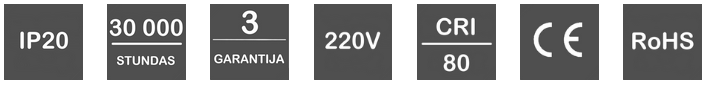 ID:24343 Jauda: 6W (CREE) Gaismas plūsma:620lm(104lm/W) Spriegums: AC100~290V Izmēri:D85xH42mmmm (Iegriežamais – D70mm) IP Protokols: IP20 Materiāls: Alumīnijs, PC Gaismas krāsa:3000K Svars:0,28KG