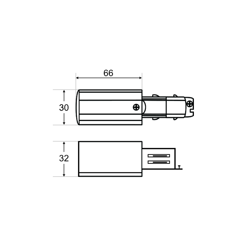 ID:12091 Pielietojums: Pievada strāvu sliedei. Materiāls: PC Komplektā ietilpst savienojuma detaļa