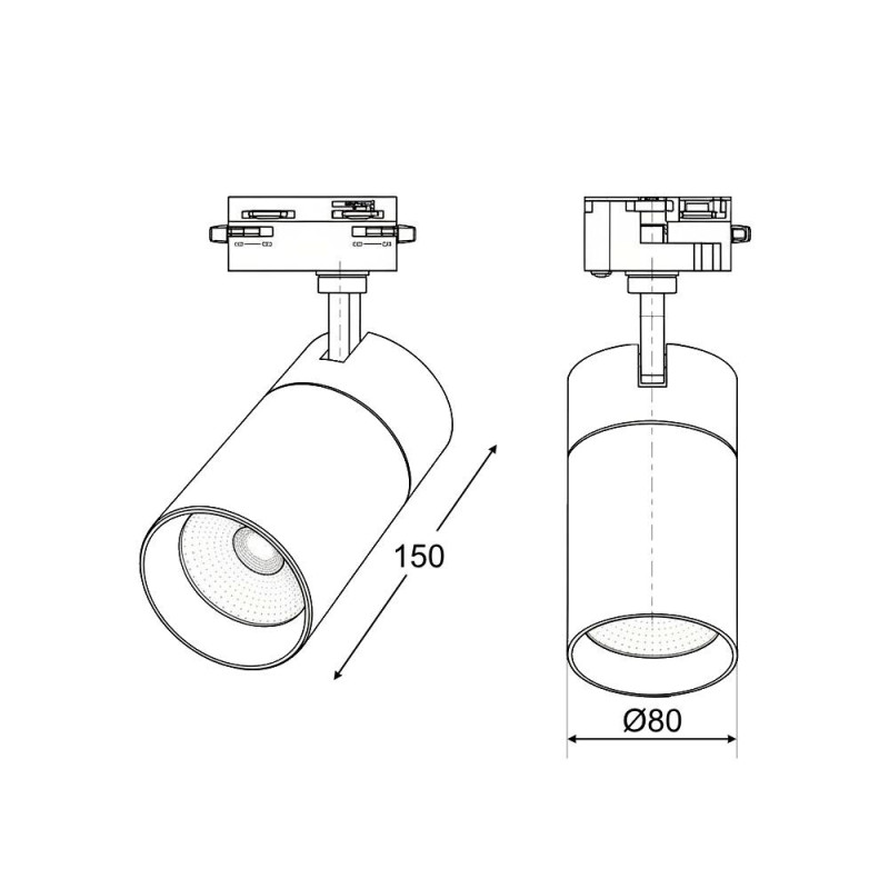 30W CCT TRIAC DIM Sliežu sistēmas CREE LED Prožektors Krāsa: Balta Jauda: 30W, D80xH150mm